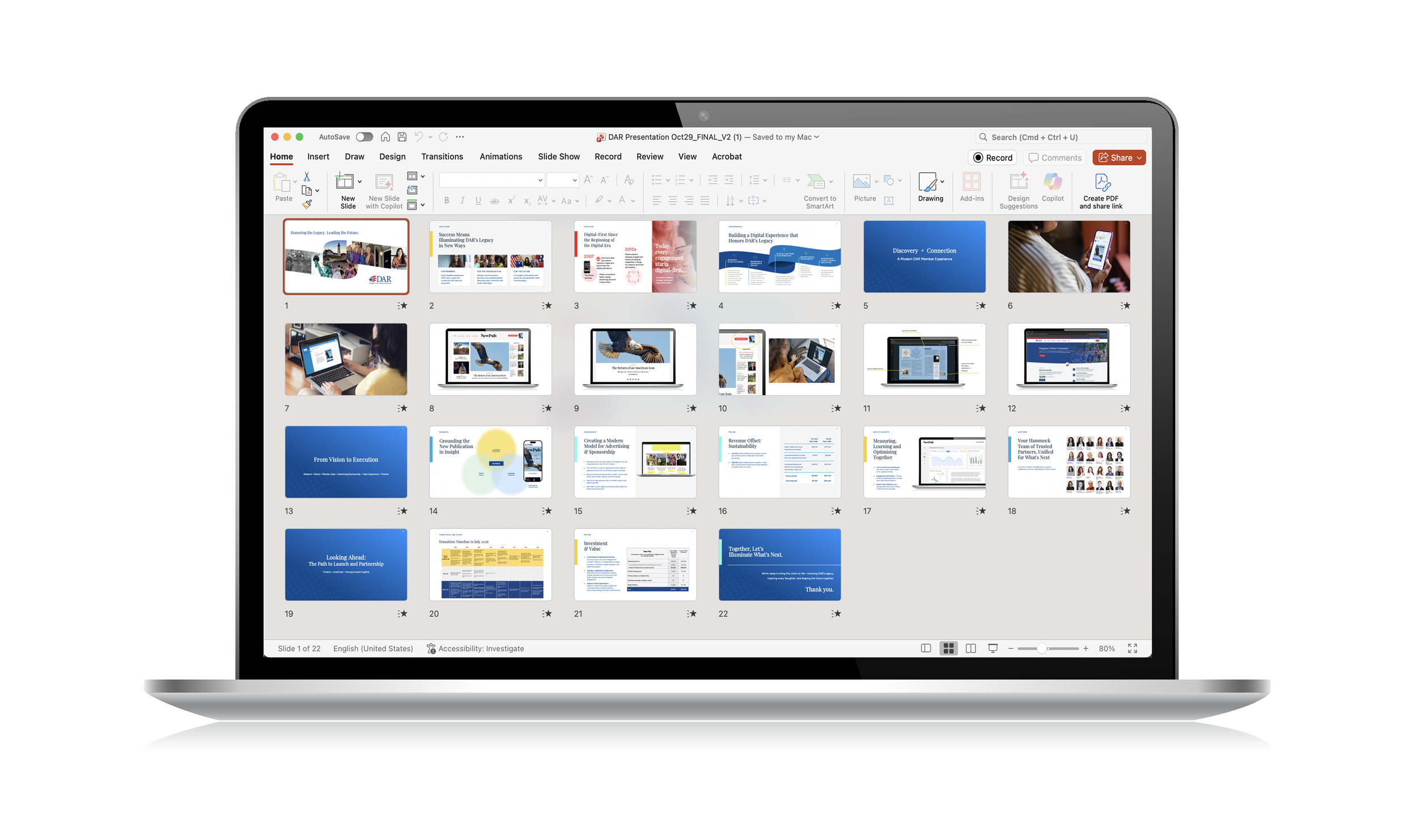 I love taking ideas and turning them into clear, beautiful presentations. Over the years I’ve designed sales decks, pitch presentations, corporate meeting slides and internal brand template systems. My goal is to make the message clear, keep things on brand, and create a flow that keeps people engaged.